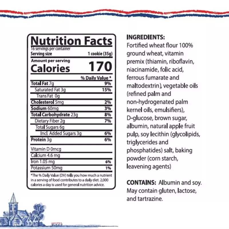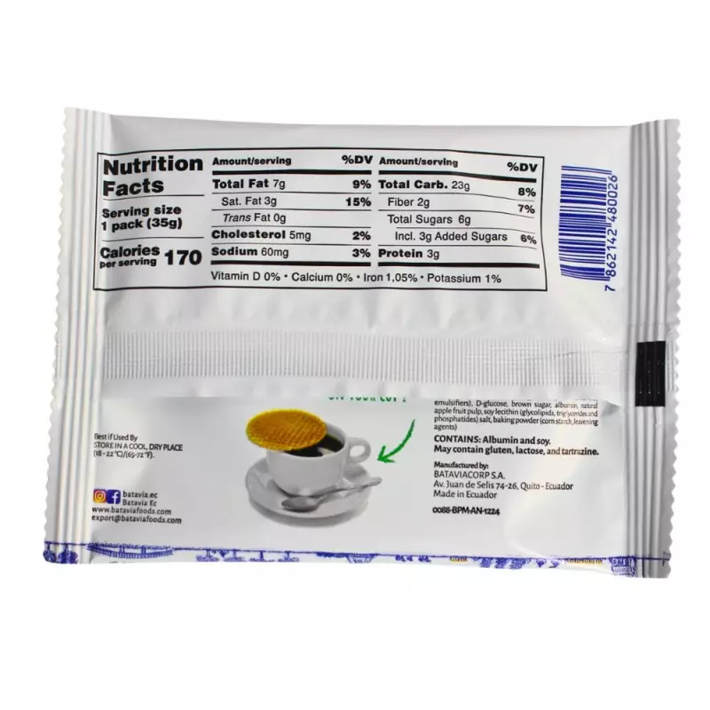 • Stroopwafels integrales, elaborados con harina integral, frutas reales y un contenido reducido de azúcar, una combinación que ofrece bienestar, naturalidad y un sabor auténtico en cada bocado. Su aporte de fibra y su relleno aromático de manzana brindan una experiencia ligera, nutritiva y más equilibrada, ideal para disfrutar en familia con total confianza.