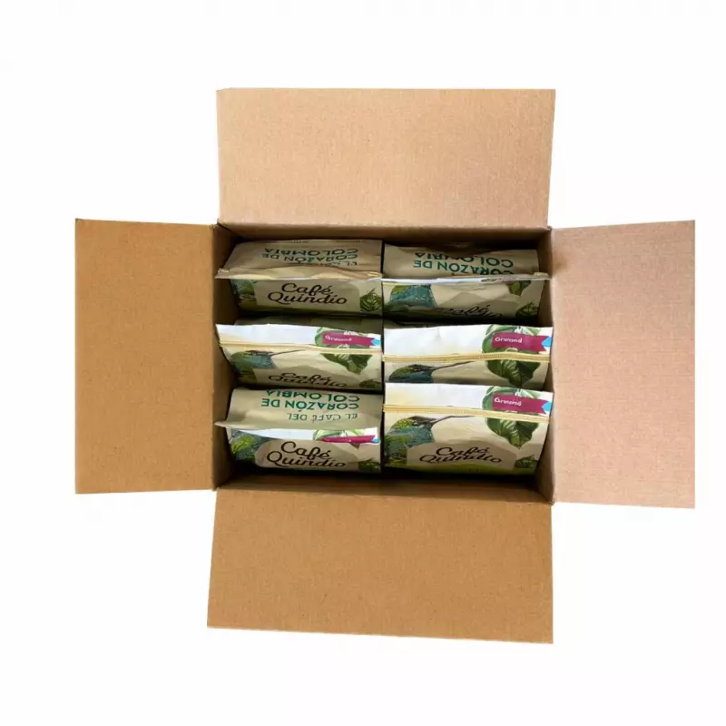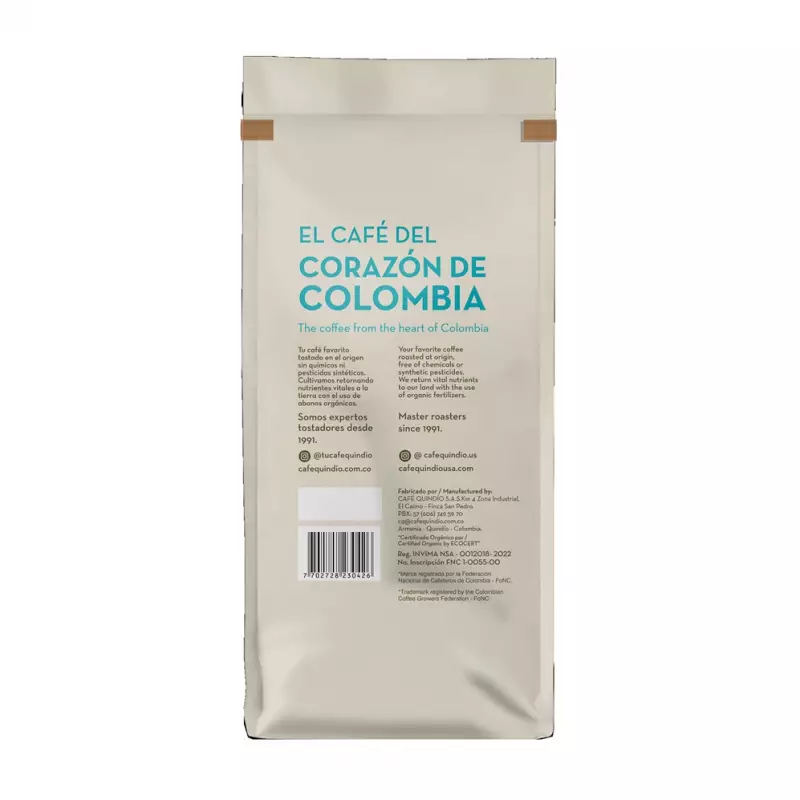 What was born as a dream, is now a reality, one in which over 400 employees work fully committed to offer you the best cup of coffee from local coffee growers roasted and packed at origin. Quindío State, from where our name comes from, is located is the center of Colombia, that´s why we call ourselves the “Coffee from the Heart of Colombia”. This strategic location gives our State the privilege of having flat terrain as well as the majestic Andes Mountains. This difference in altitudes, allows the region to offer different varieties of Arabica coffee, each with its unique characteristics of flavor, notes, body and texture. Gourmet Coffee, also known as our “House Blend”, is a blend of different varieties of coffee harvested at around 6200 feet above sea level (1900 m.a.s.l.), giving it its unique chocolate and panela flavor notes. Its medium roast with its medium-low acidity, offers you a cup of coffee with a high fragrance body and an intense chocolate scent. By buying this coffee, you are contributing to the well-being of many local and small coffee growers in the well-known “Coffee Triangle” of Colombia, where coffee tradition is still the staple of this magical region