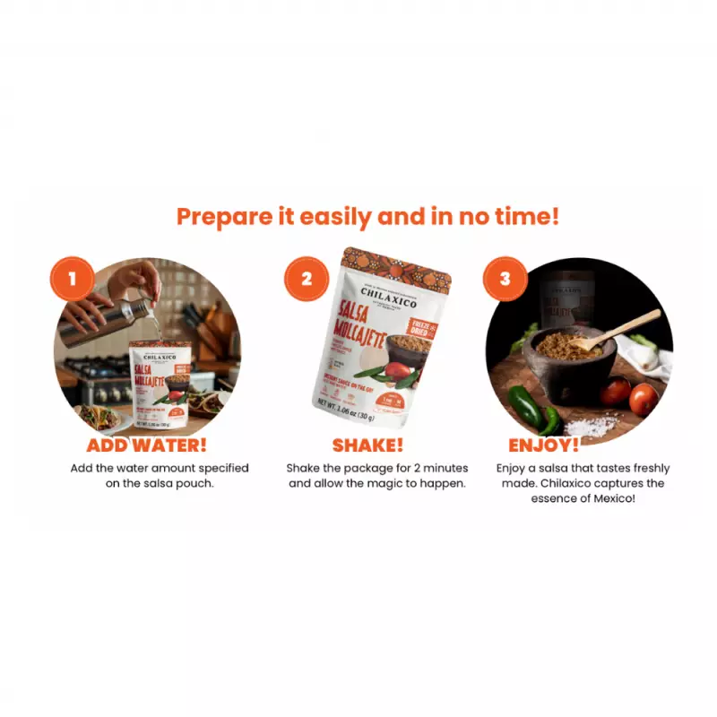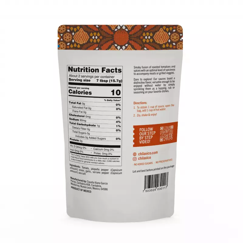 Home > Food and Beverage > Condiments, Sauces and Spreads > Sauces > Chilaxico | Freeze dried mexican salsa, Molcajete style | 1.06 oz E
