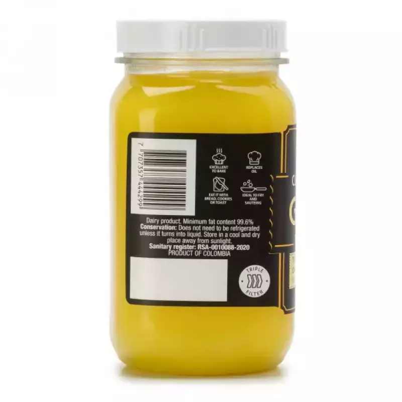 • Clarified butter Ghee original flavor. Long shelf life, does not need to be refrigerated, high smoke point, no salt added, Kosher, ideal to ketogenic and paleo diet, wide uses in cook, 100% natural. Certifications: Gluten Free by GFCO GMP by SGS Kosher ISO 9001:2015 by Bureau Veritas