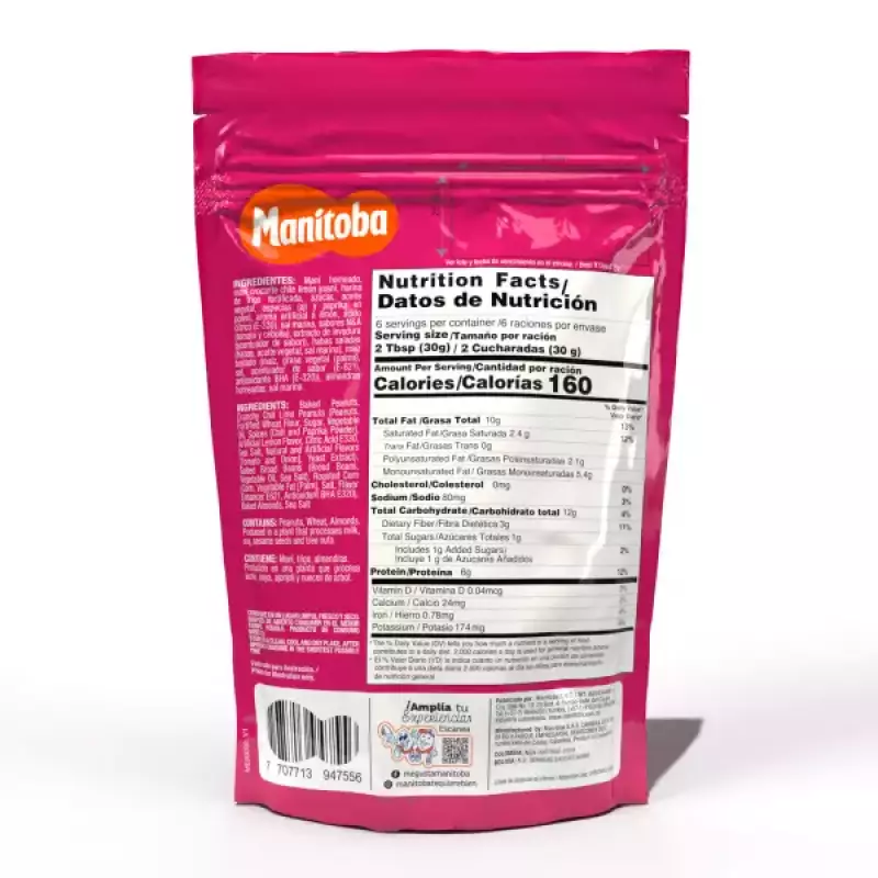 Manitoba is a colombian company that provides peanuts, dried fruits and nut snacks nationally and internationally. The company was born as a family business in 1979, resulting from the idea of two brothers who started selling glazed peanuts to their classmates at school with ancestral recipes. Now a days the company exports to more than 12 countries, such as United States, Ecuador, Panamá, Perú, Chile, Bolivia, Venezuela, Dominican Republic, El Salvador, Guatemala and the Caribbean. We sell our products mainly in supermarkets, hypermakets, discounters, and other midium and big store chains.