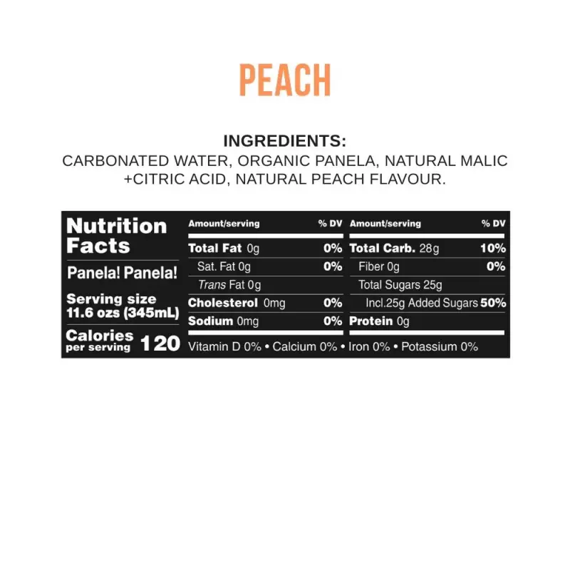 Home > Food and Beverage > Beverages > Carbonated > Panela!Panela! | Sparkling Superdrink, Peach | 12 fl oz. E.