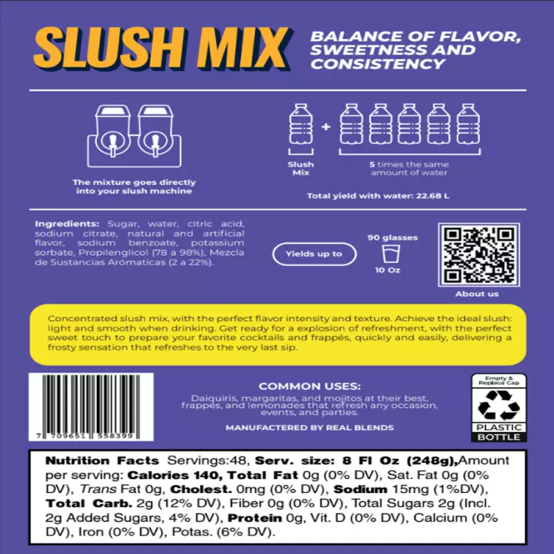 Based on a foundation of innovation, quality, and passion, Real Blends offers an extensive portfolio of over 250 products, including syrups, granita mixes, cocktail ingredients, and more. With a state-of-the-art production facility and a team of experts boasting over 20 years of industry experience, Real Blends ensures every product meets the highest standards of excellence. From sourcing the finest natural ingredients to maintaining rigorous quality controls, the company is committed to delivering products that inspire creativity and set businesses apart.