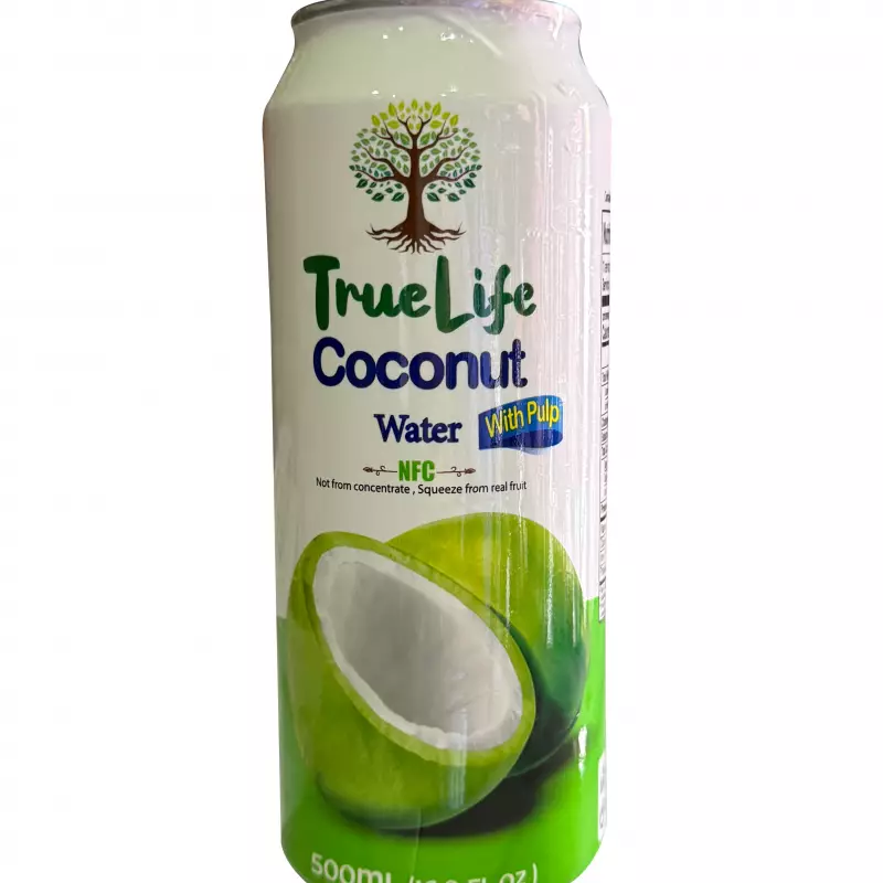 True Life Coconut Water with Pulp – Pure, refreshing coconut water made from real green coconuts. Not from concentrate, with natural pulp for an authentic tropical experience.